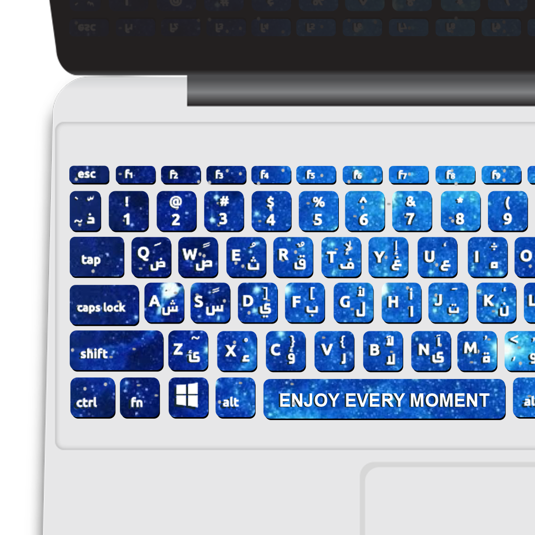 سهل التركيب على الأزرار بدون فقاعات، ويمكن إزالته بدون ترك أي أثر لاصق. مثالي لحماية الكيبورد من التآكل أو لتغيير اللغة أو لإضافة لمسة شكل مميزة تناسب ذوقك.
