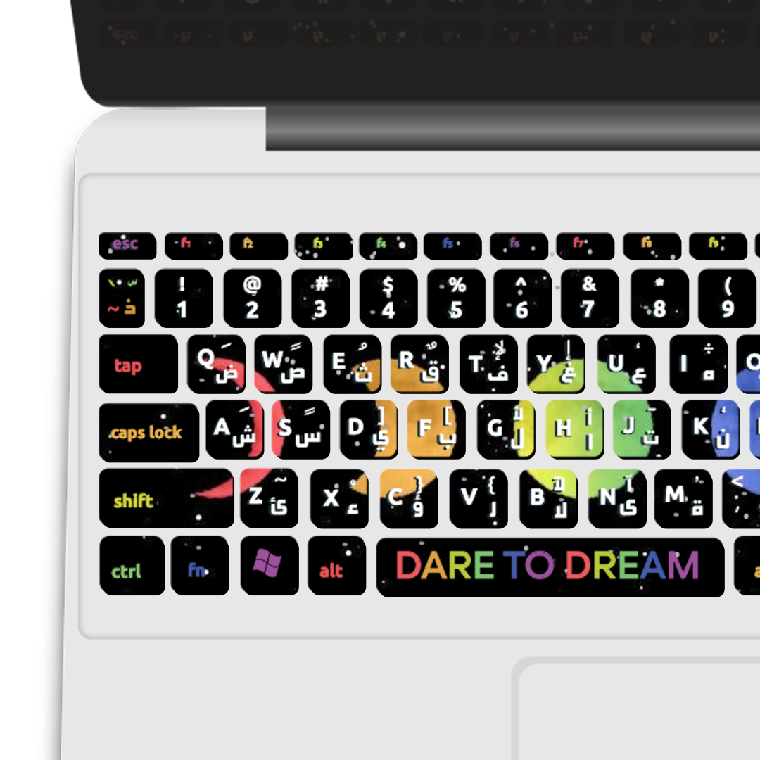 سهل التركيب على الأزرار بدون فقاعات، ويمكن إزالته بدون ترك أي أثر لاصق. مثالي لحماية الكيبورد من التآكل أو لتغيير اللغة أو لإضافة لمسة شكل مميزة تناسب ذوقك.