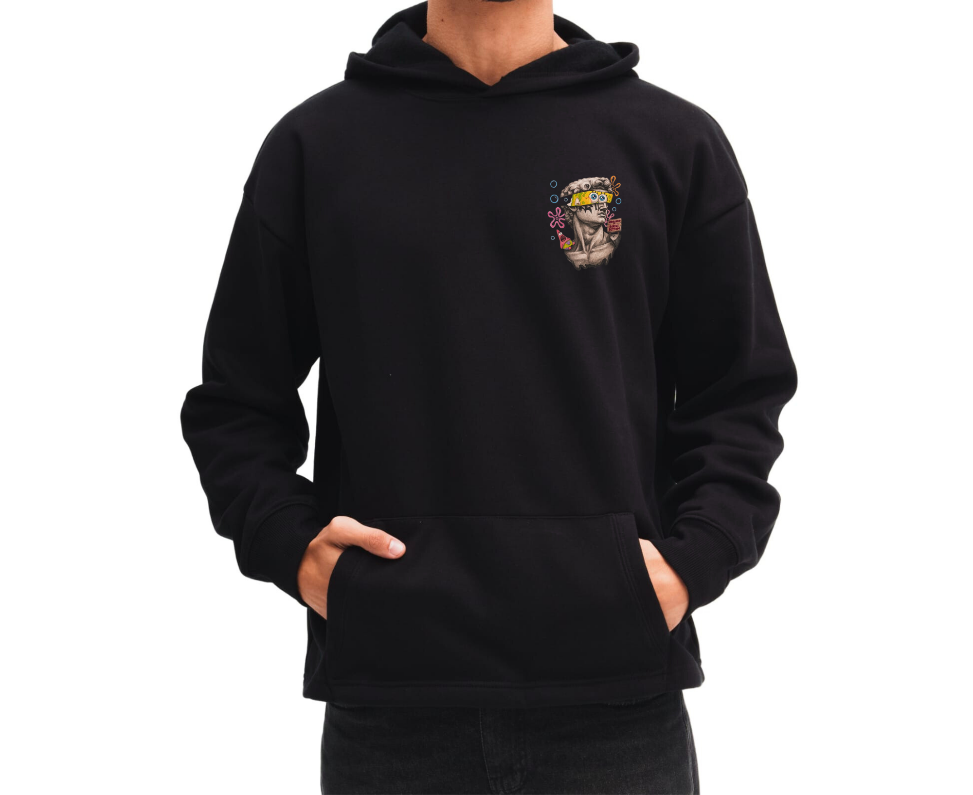 الطباعة واضحة بألوان ثابتة وتفاصيل دقيقة تضيف لمسة مميزة تعبر عن شخصيتك. تصميم عملي بغطاء رأس (كابيشو) وجيب أمامي يمنحك دفء وراحة في الأجواء الباردة، سواء للاستخدام اليومي أو للخروجات والكاجوال لوك.